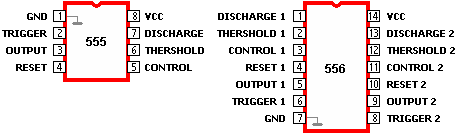Existen versiones de bajo consumo con el mismo patillaje y versiones dobles, es decir que contienen 2 circuitos iguales en su interior, que comparten los terminales de alimentación y se conocen con la designación genérica de 556, observa la siguiente imagen…