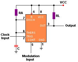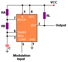 Necesita un número mínimo de componentes exteriores, la frecuencia de oscilación se controla con dos resistencias y un condensador. Cuando funciona como monoestable el retardo se determina con los valores de una resistencia y de un condensador.