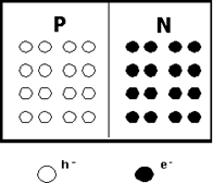 Supongamos que se dispone de un monocristal de silicio puro, dividido en dos zonas con una frontera nítida, definida por un plano. Una zona se dopa con impurezas de tipo P y la otra de tipo N (Figura 4). La zona P tiene un exceso de huecos, y se obtiene introduciendo átomos del grupo III en la red cristalina (por ejemplo, boro). La zona N dispone de electrones en exceso, procedentes de átomos del grupo V (fósforo). En ambos casos se tienen también portadores de signo contrario, aunque en una concentración varios órdenes de magnitud inferior (portadores minoritarios).