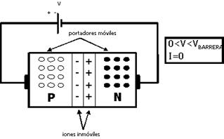 Diodo PN durante la aplicación de una tensión inferior a la de barrera