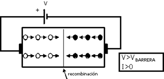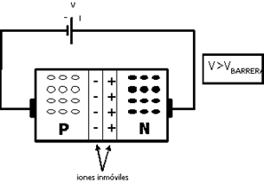 Diodo PN bajo la acción de una tensión mayor que la de barrera