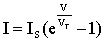 Para V<0, el término exponencial es muy pequeño, despreciable frente a la unidad. Entonces la intensidad tiende al valor IS, que como ya se había indicado anteriormente, es la corriente inversa del diodo. Para V>0, la exponencial crece rápidamente por encima de la unidad.