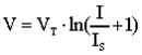A partir de esta expresión, se puede calcular la caída de tensión en el diodo para las magnitudes de corriente habituales en los circuitos electrónicos. Por ejemplo, para un intervalo de corrientes 1 mA < I < 1 A se tienen tensiones 0.6 V <VDIODO< 0.77 V. Como se puede apreciar, mientras que la corriente ha variado 3 órdenes de magnitud, la tensión apenas ha experimentado un cambio de 200 mV, por lo que es posible aproximar la caída de tensión en la unión PN a un valor constante de 0.7 V.