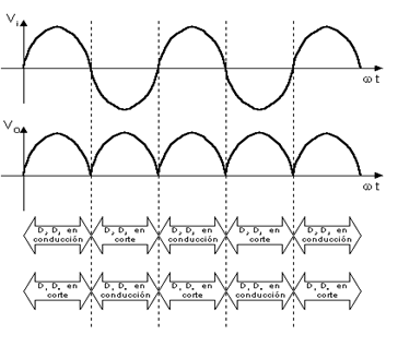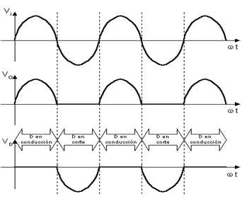 - vi: tensión de entrada, vi=VM·sen(wt).
