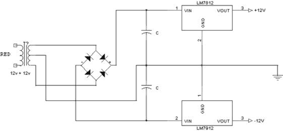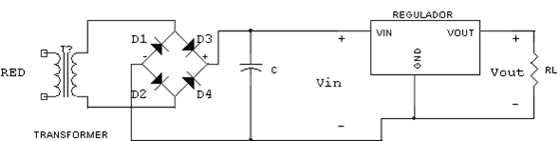 Este es el esquema de una fuente de alimentación regulada con uno de estos reguladores: