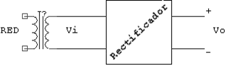 El rectificador se conecta después del transformador, por lo tanto le entra tensión alterna y tendrá que sacar tensión continua, es decir, un polo positivo y otro negativo: