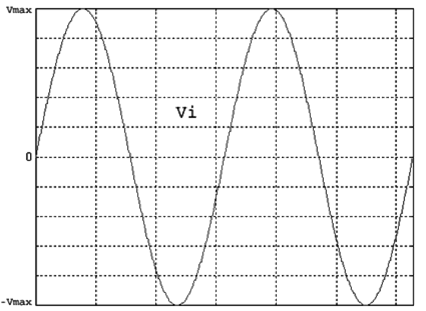 La tensión Vi es alterna y senoidal, esto quiere decir que a veces es positiva y otras negativa. En un osciloscopio veríamos esto: