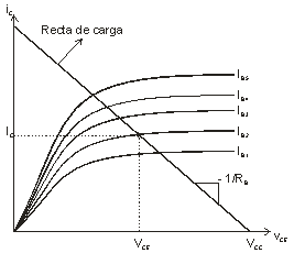 Obsérvese la completa analogía con la polarización de un diodo. La solución se puede obtener gráficamente mediante la intersección de la curva característica IB-VBE del transistor con la recta de carga impuesta por la resistencia RB y la pila VBB (como sucedía en el caso de un diodo).