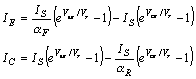 Cada una de las curvas se corresponde con un valor constante de la intensidad de base (IB) o, lo que es lo mismo, de la tensión VBE. Para entender por qué tiene esta forma la característica recordemos las ecuaciones de Ebers-Moll: